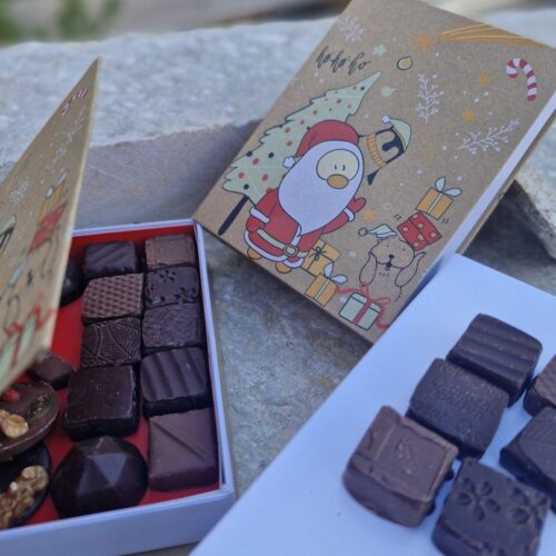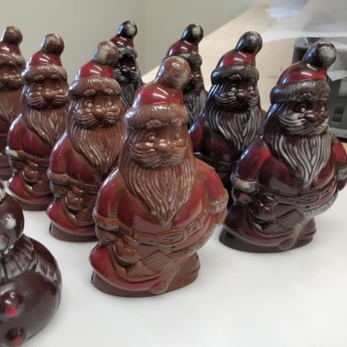 Moulage Père Noël Noir bio, fait maison, sans lécithine, sans conservateur, avec friture noir et lait à l’intérieur